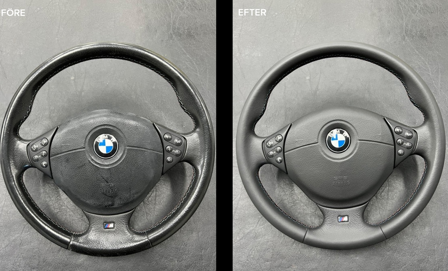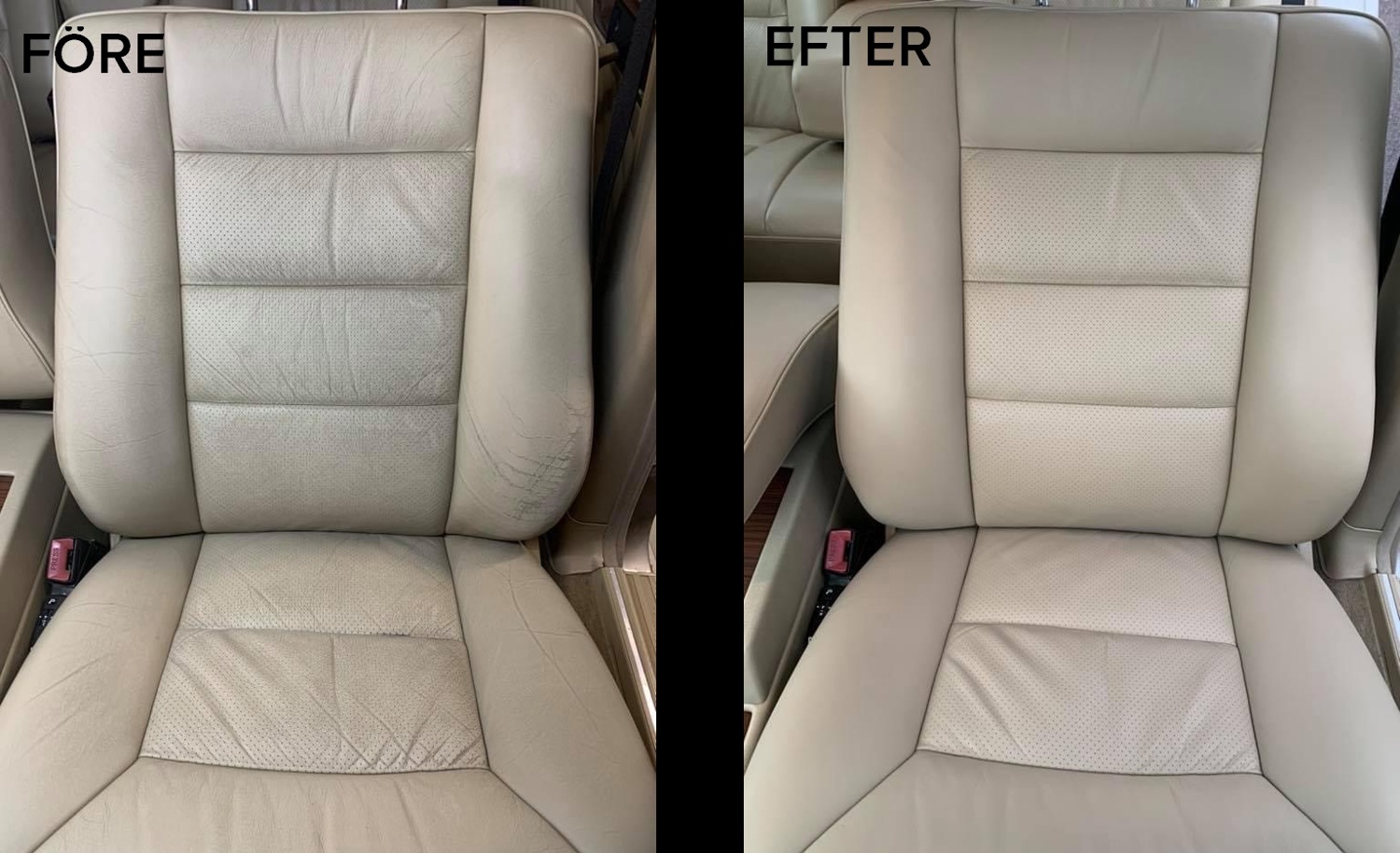 Vi återställer läder till sitt ursprungliga skick, behandlar slitage och skyddar mot framtida skador. Vi kan även återställa stolar och andra plastdetaljer inne i bilen som råkat ut för en skada.