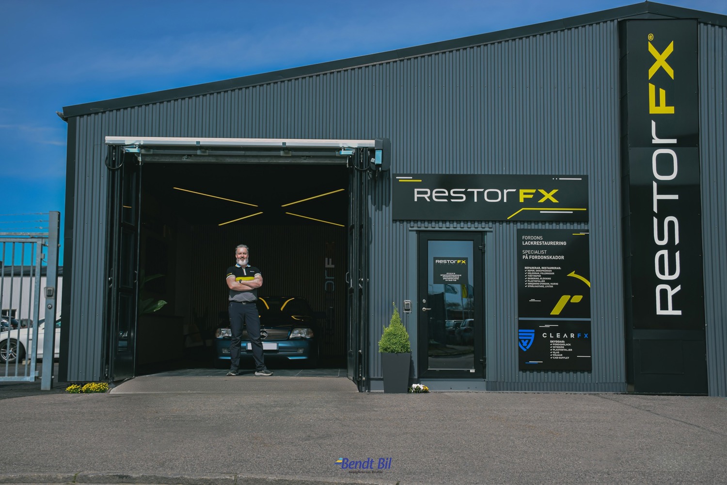 Nu erbjuder vi på Bendt Bil professionella tjänster inom bilvård i Halmstad, med fokus på lackbehandling och interiörvård, för att bibehålla och förbättra fordonets utseende och skick. Genom att använda högkvalitativa produkter garanterar vi professionell vård för din bil så att den alltid är i toppskick. RestorFX är ett globalt etablerat koncept, verksamt i 45 länder, och har nyligen flyttat in hos Bendt Bil i Halmstad. Det har redan gått några månader sedan vi slog upp portarna i de nya lokalerna, och Peter och hans kollegor har snabbt kommit till rätta. Inom kort planerar de att utöka ytterligare. Peter förklarar: